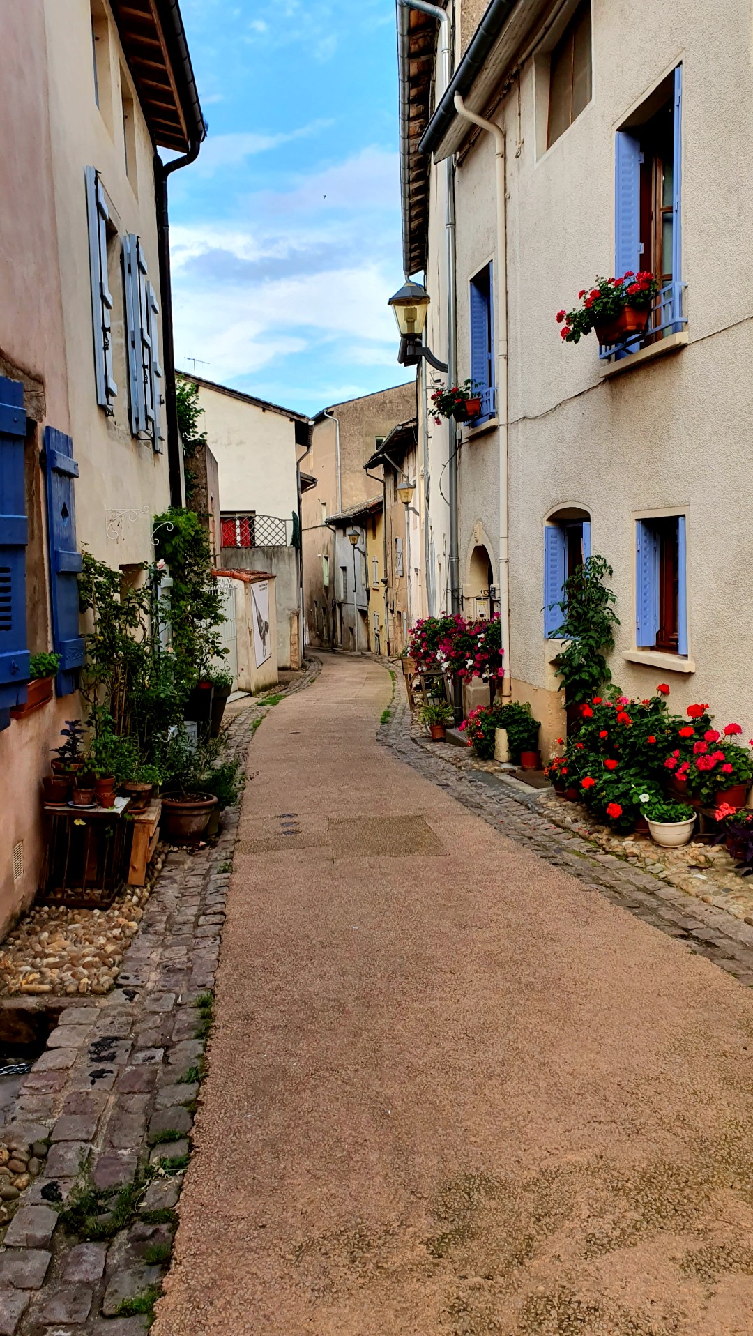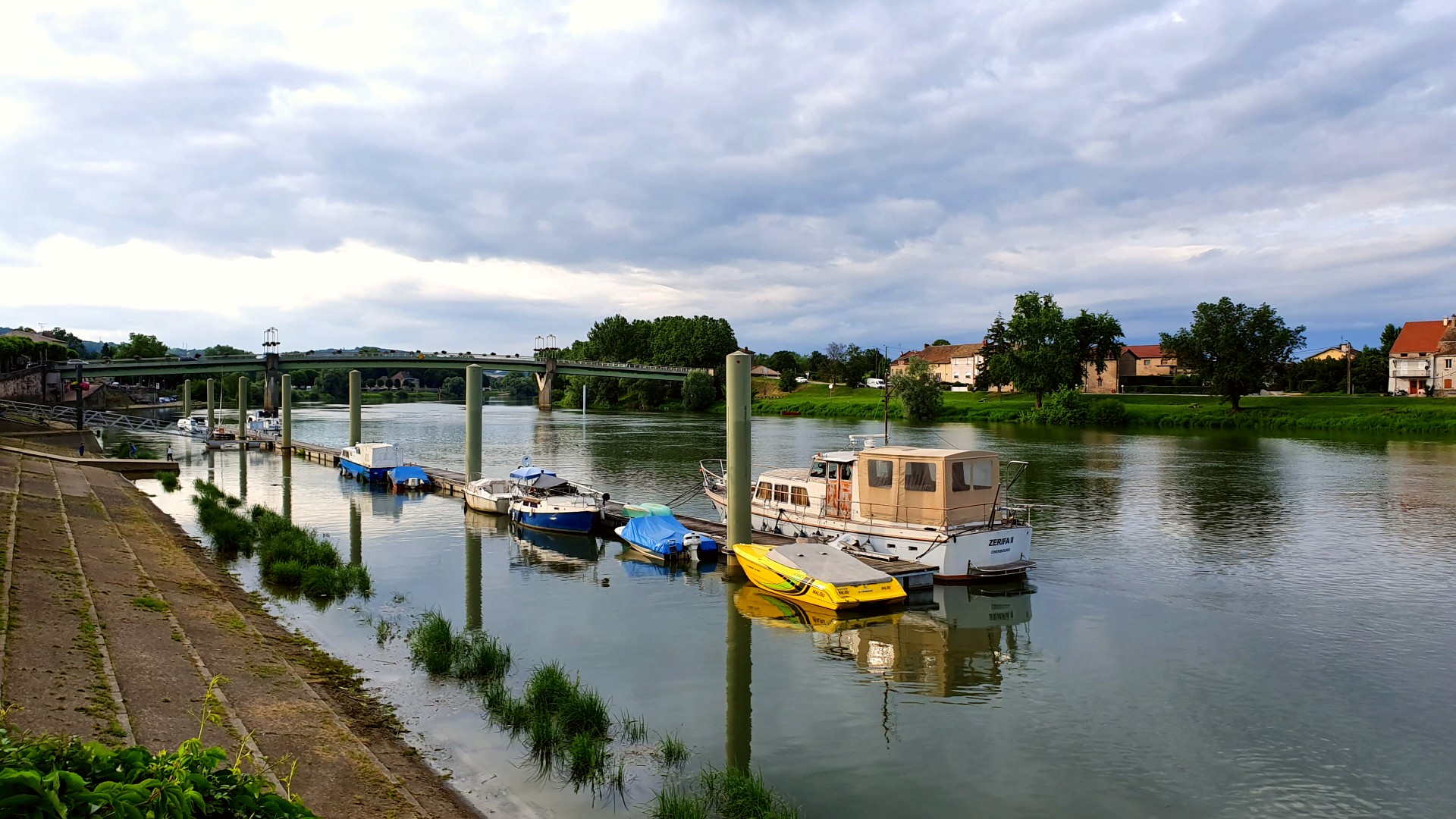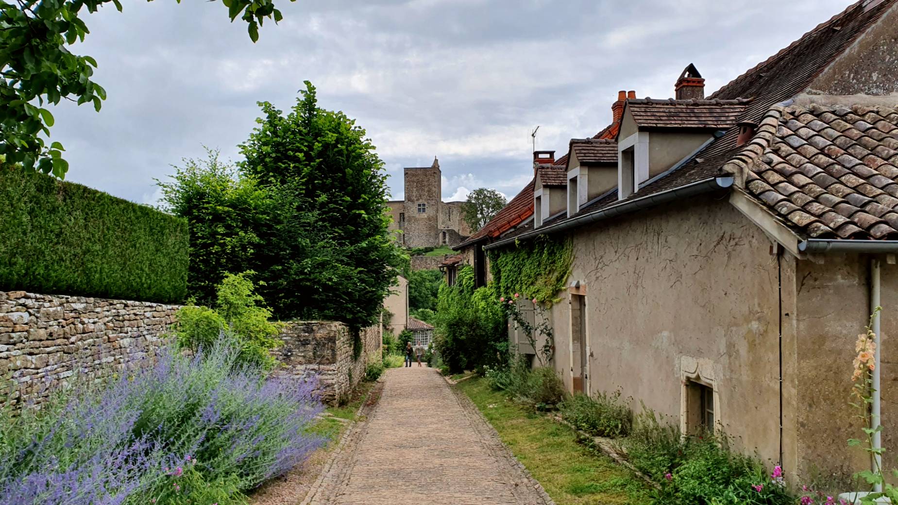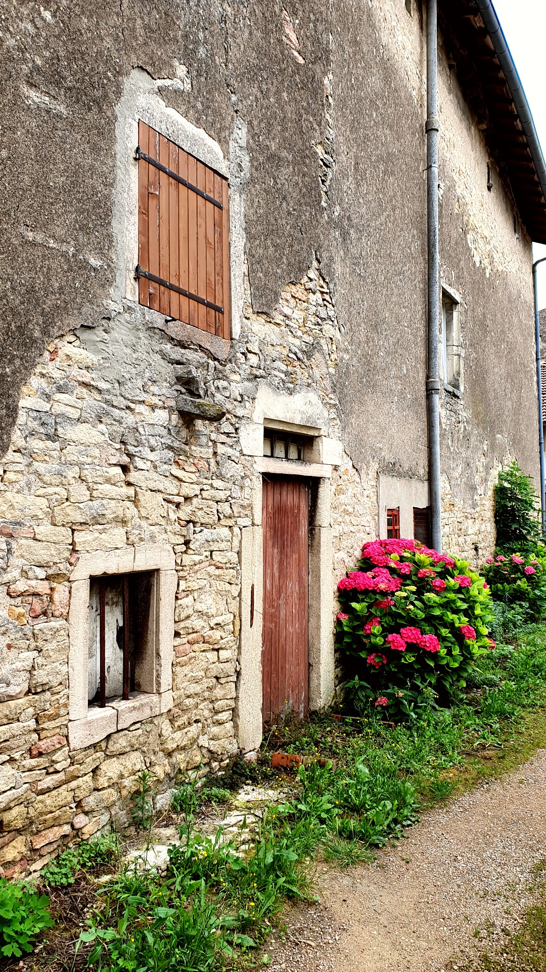 C’est à côté d’Uchizy que nous avions élu domicile pour la nuit. Nous commençons la journée par une halte au village pour découvrir l’église Saint-Pierre. Juste à côté se déploie une petite place paisible. Les maisons aux façades écaillées laissent entrevoir leur structure de pierre. La végétation est en fleurs, et de magnifiques hortensias viennent illuminer le ciel un peu voilé de ce début de matinée.