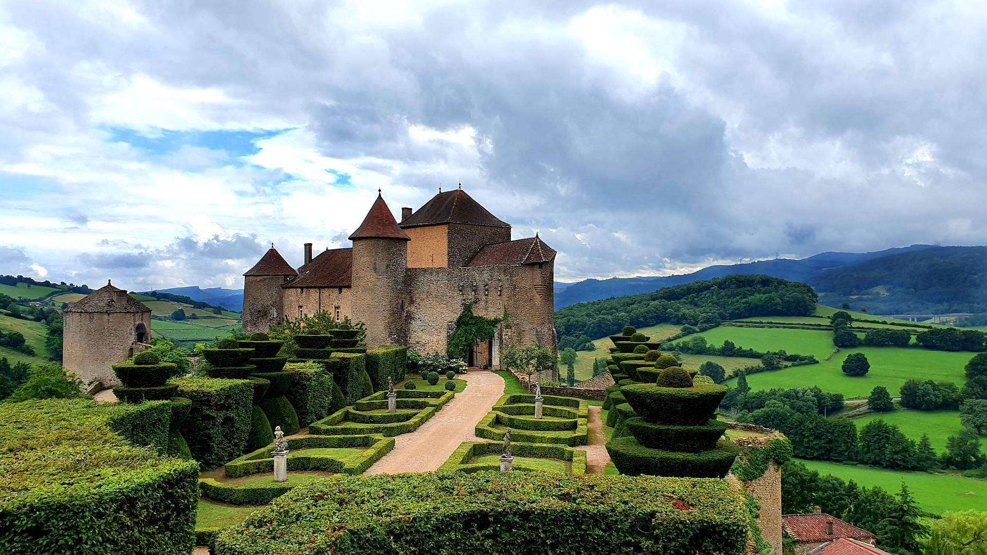 Un gros coup de coeur que la découverte du château de Verzé. Impossible de manquer cet imposant château fort flanqué de ces 14 tours et enserrés par ces 3 grandes enceintes protégeant cette place forte de la Bourgogne du Sud. Le château avec ses jardins et le panorama offert sur la vallée est tout simplement remarquable ! On en se lasse pas de la vue !