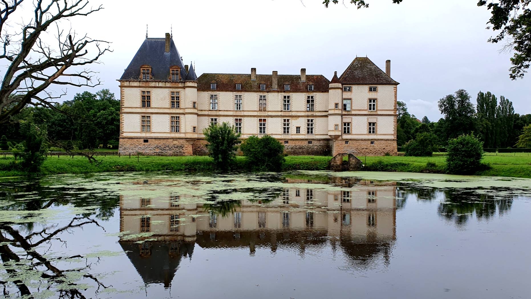 On continue la découverte de la région avec un autre monument majeur du patrimoine de la bourgogne du Sud, le château de Cormatin. Construit au XVIIe siècle, le château impressionne par sa monumentalité et son environnement. Avec ses jardins, sa volière et son parterre d’honneur, le site a énormément de charme. Nous ne nous attendions pas à une telle découverte. Et encore, nous n’avions pas tout vu. Les intérieurs sont richement décorés avec peintures, tableaux, menuiseries, et objets d’époque. Et enfin, son escalier à cage vide monumental est unique en France et représente une prouesse technique au XVIIe siècle. Vous en apprendez bien plus encore lors de la visite guidée très complète !
